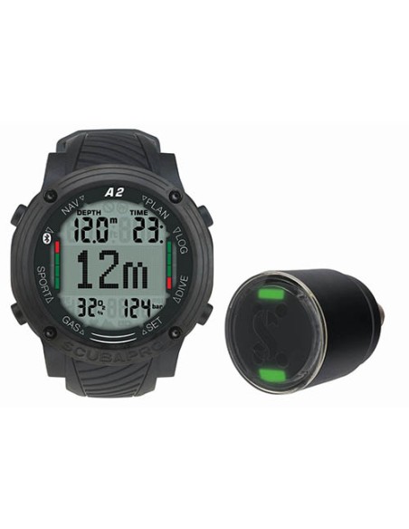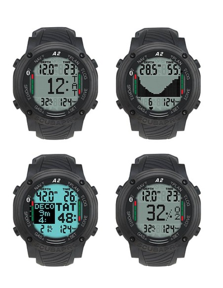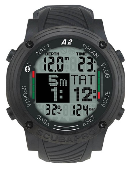 El A2 está concebido para buceadores avanzados y buceadores técnicos que valoran el tamaño compacto y la comodidad de los ordenadores de pulsera, pero que además exigen ciertas prestaciones y funciones para superarse en la práctica del buceo. Para su uso diario en superficie, el A2 dispone de funciones de medición de tiempo y modo Sport. Cuando llega el momento de bucear, el A2 ofrece todo lo que un buceador recreativo avanzado puede llegar a desear y todo lo que un buceador técnico necesita. Para empezar, dispone de un sistema de gestión de gas sin cables que controla la presión de la botella y proporciona el tiempo real remanente en el fondo. La brújula digital con compensación de inclinación facilita la orientación bajo el agua y en superficie.