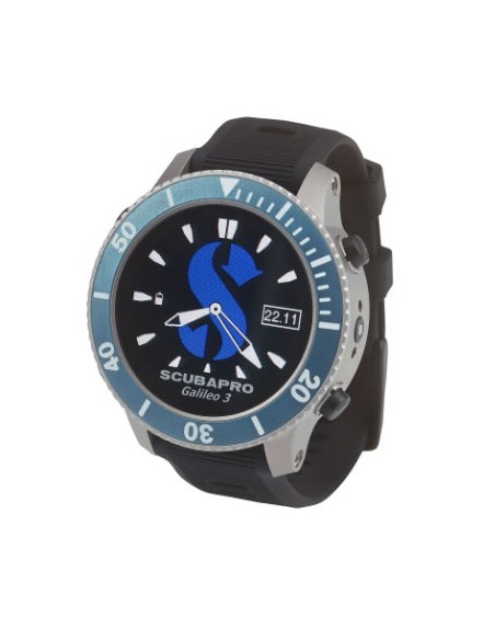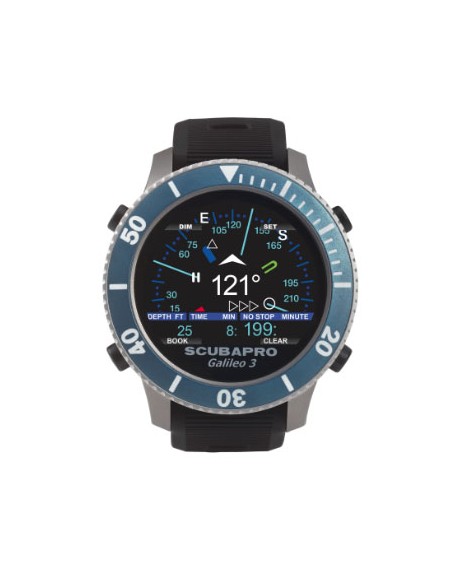 Galileo G3 (G3) es el ordenador de buceo tipo reloj de alta gama de SCUBAPRO, que combina un diseño elegante y una pantalla en color con el aspecto de un reloj clásico. La luminosa pantalla a todo color de alto contraste del G3 permite una fácil legibilidad y su retroiluminación una excelente legibilidad en todas las condiciones.. Además, cuenta con retroiluminación para garantizar una excelente visibilidad en todas las situaciones. Gracias al fiable diseño de menús y al control de cuatro botones de Galileo, resulta extremadamente intuitivo moverse por los seis modos de inmersión, las dos opciones de algoritmo, los estilos de pantalla y otras opciones personalizadas de gestión de inmersiones. El G3, está alimentado por una batería de litio recargable en una carcasa de acero inoxidable. Le ofrece todo lo que necesita de un ordenador de buceo combinado con la comodidad y estilo y la utilidad de un reloj de pulsera de uso diario.