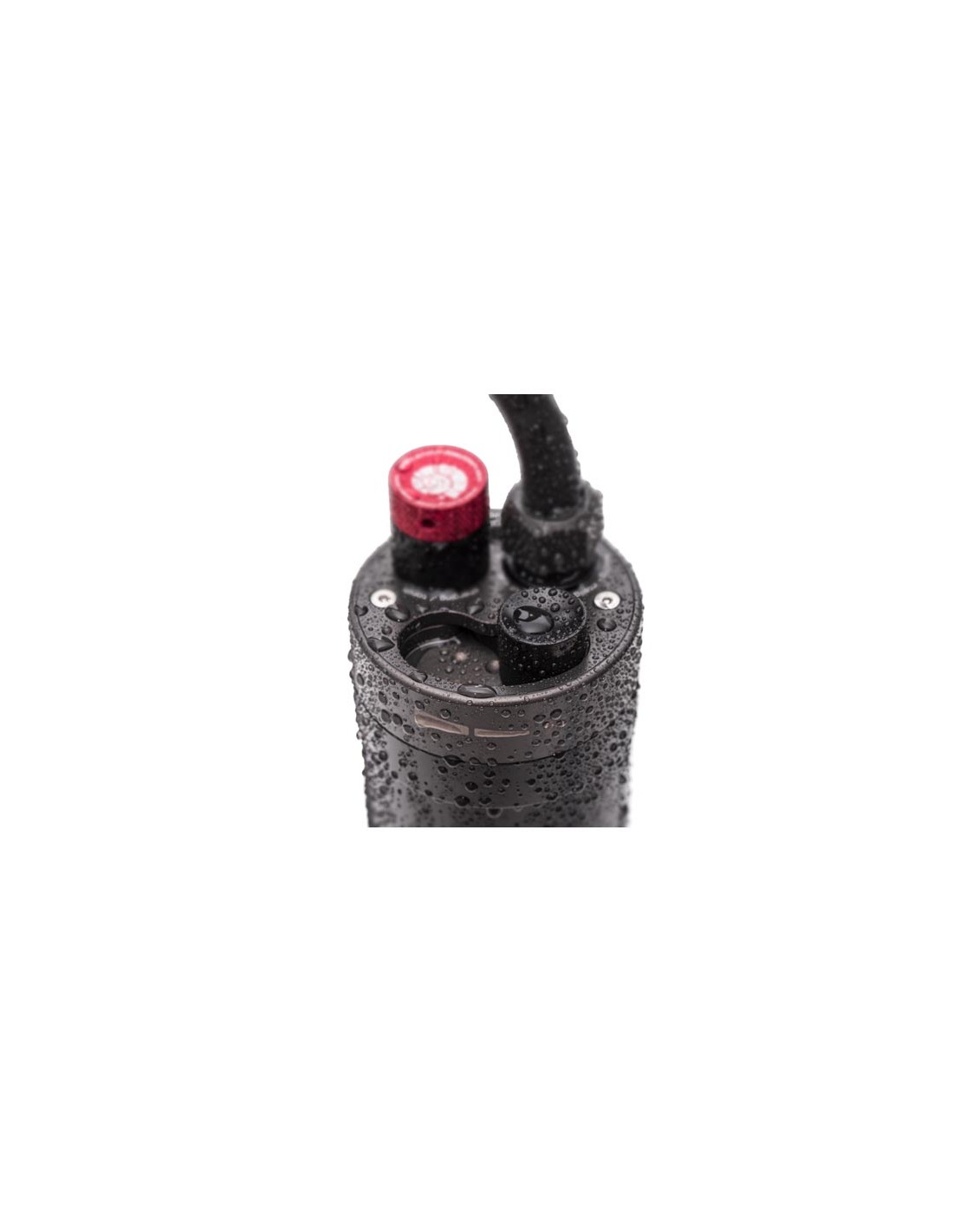 Puerto de alimentación para sistemas de iluminación: El puerto de "carga/linterna" se utiliza para cargar la batería y es también apto para conectar luces umbilicales de 12 V. Este puerto está asegurado con una tapa de aluminio (la tyapa roja visible en las fotos). Recuerde asegurar el puerto con la tapa cuando no esté en uso para cargar o alimentar la luz umbilical. Bucear con una batería que tenga una tapa mal asegurada en el puerto de carga puede provocar inundaciones, lo que puede dañar la batería.