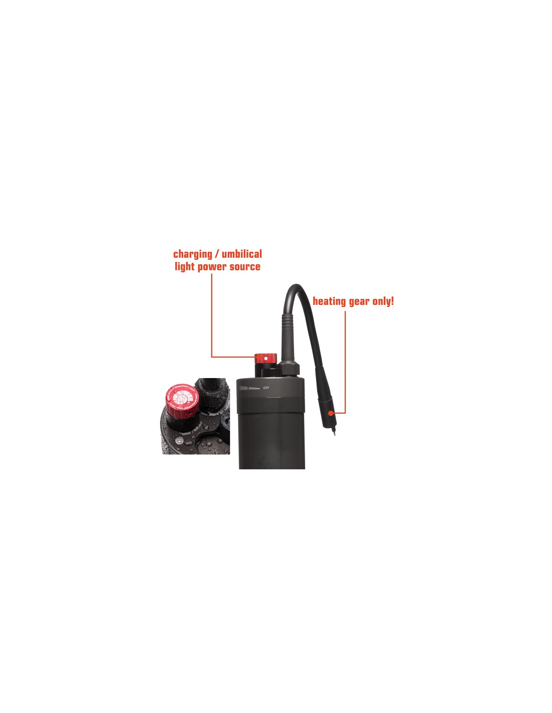 La batería Ammonite ACCU THERMO ha sido diseñada para suministrar energía de manera eficiente y segura a los sistemas calefactables de buceo y cualquier elemento como por ejemoplo cabezales de iluminación del tipo umbilical que funcionen a 12 V.
