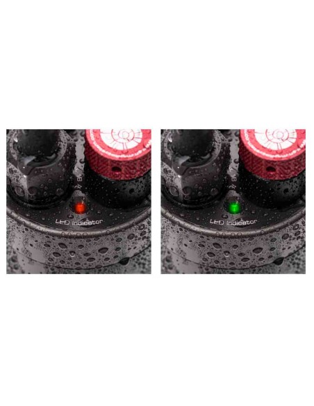 Led indicador en fase 1:: El indicador LED se encuentra en la tapa superior de la batería e informa al usuario sobre el nivel de carga de la batería y el estado de funcionamiento de todo el sistema.