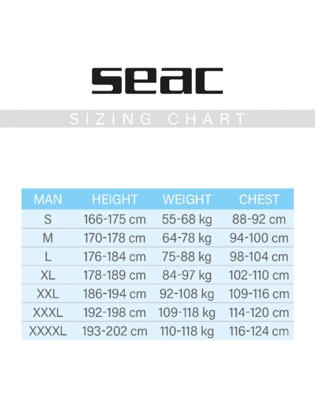 El nuevo y rediseñado traje Seac Sub SENSE de 3mm de espesor, fabricado con neopreno Techspan super elástico, cuenta con un diseño de cuello alto, perneras y brazos cortos para una mayor comodidad. Su elaboración en neopreno liso es muy suave y confortable al tacto.