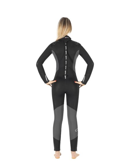 El nuevo Pioneer conserva su distintivo cierre de cremallera trasera. Equipado con cremalleras en los tobillos para evitar forzar al vestirse y desvestirse. El traje de neopreno Pioneer está equipado con un cierre en el cuello colocado en la parte posterior. También cuenta con una cremallera antifricción y un área grande insertada en ambas muñecas para asegurar el agarre (grip) con la computadora en la muñeca.