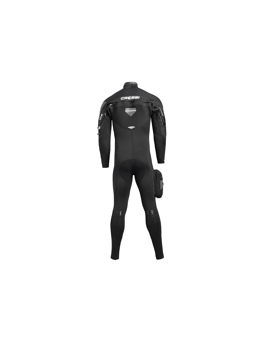 - Cuello en neopreno de 3 mm, con forro interior Ultraspan© y exterior Glide Skin©, para facilitar la colocación del traje y la estanqueidad de esta crítica zona, especialmente en el caso de las buceadoras, con un perímetro de cuello reducido. El patronaje Anatomic Shape prevé el perfil idóneo del cuello respecto del pecho (120º) y evita la opresión en esta zona. Una segunda solapa exterior mejora la estética y la estanqueidad del cuello.