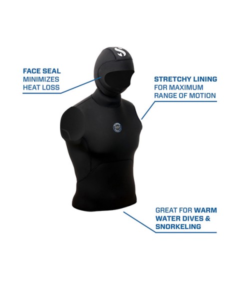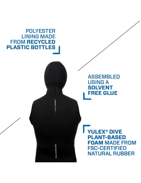 Diseñado con la tecnología exclusiva Pure Design Concept de SCUBAPRO, este nuevo chaleco con capucha está fabricado con caucho Yulex superelástico y totalmente natural.