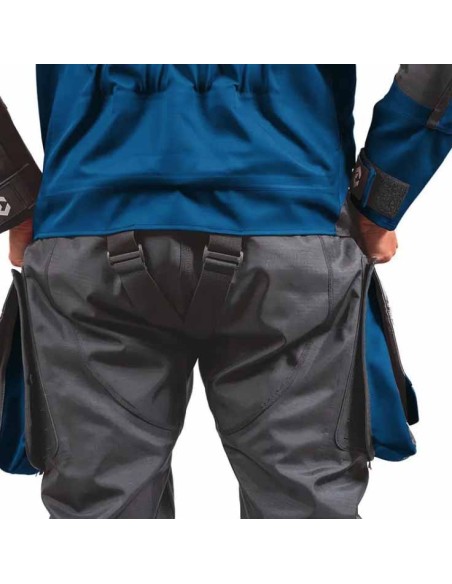 Las zonas con doble teijio ripstop en los codos, las rodillas y la entrepierna protegen las zonas de estrés manteniendio la facilidad la de movimientos. Las botas están hechas de neopreno de capas cruzadas de doble cara de 3 mm, con correas en los tobillos, topes para las correas de las aletas y una suela protectora pero muy flexible.