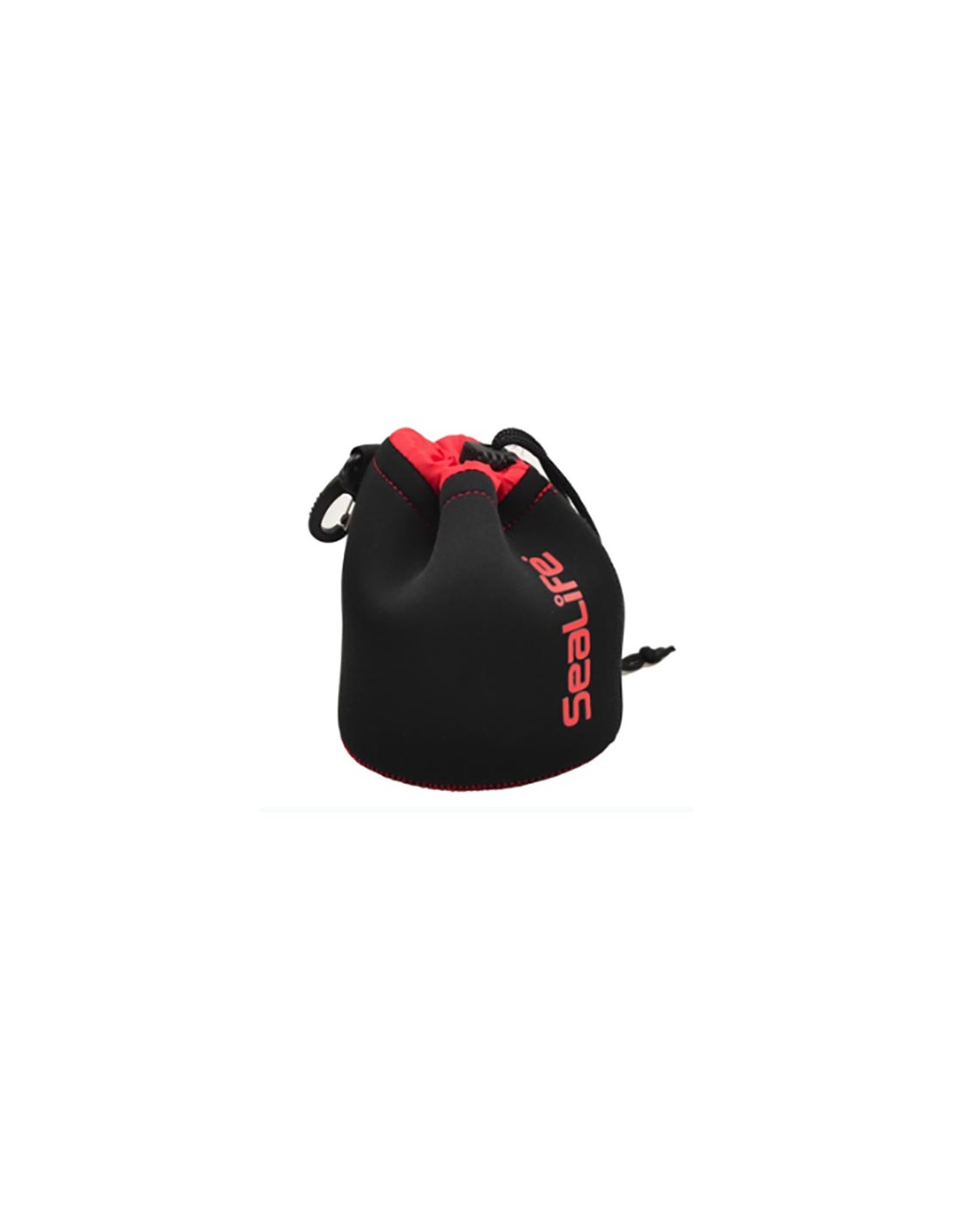 La bolsa protectora SeaLife cuenta con un forro suave protege cámaras, lentes, linternas y otros equipos de buceo de precisión. El interior está forrado con terciopelo suave "Gear Pouch", un material que evita arañazos en ópticas y dispositivos electrónicos sensibles, y está especialmente diseñado para lentes. El exterior cuenta con neopreno recubierto, un clip giratorio y trabillas para cinturón. El collar tiene un forro impermeable y un cordón de cincha con cierre deslizante para sellar la parte superior de la bolsa. Dimensiones interiores: 13 cm de diámetro, 15 cm de alto; 1 litro de volumen. La bolsa está diseñada para caber dentro de la mochila SeaLife Foto Pro.